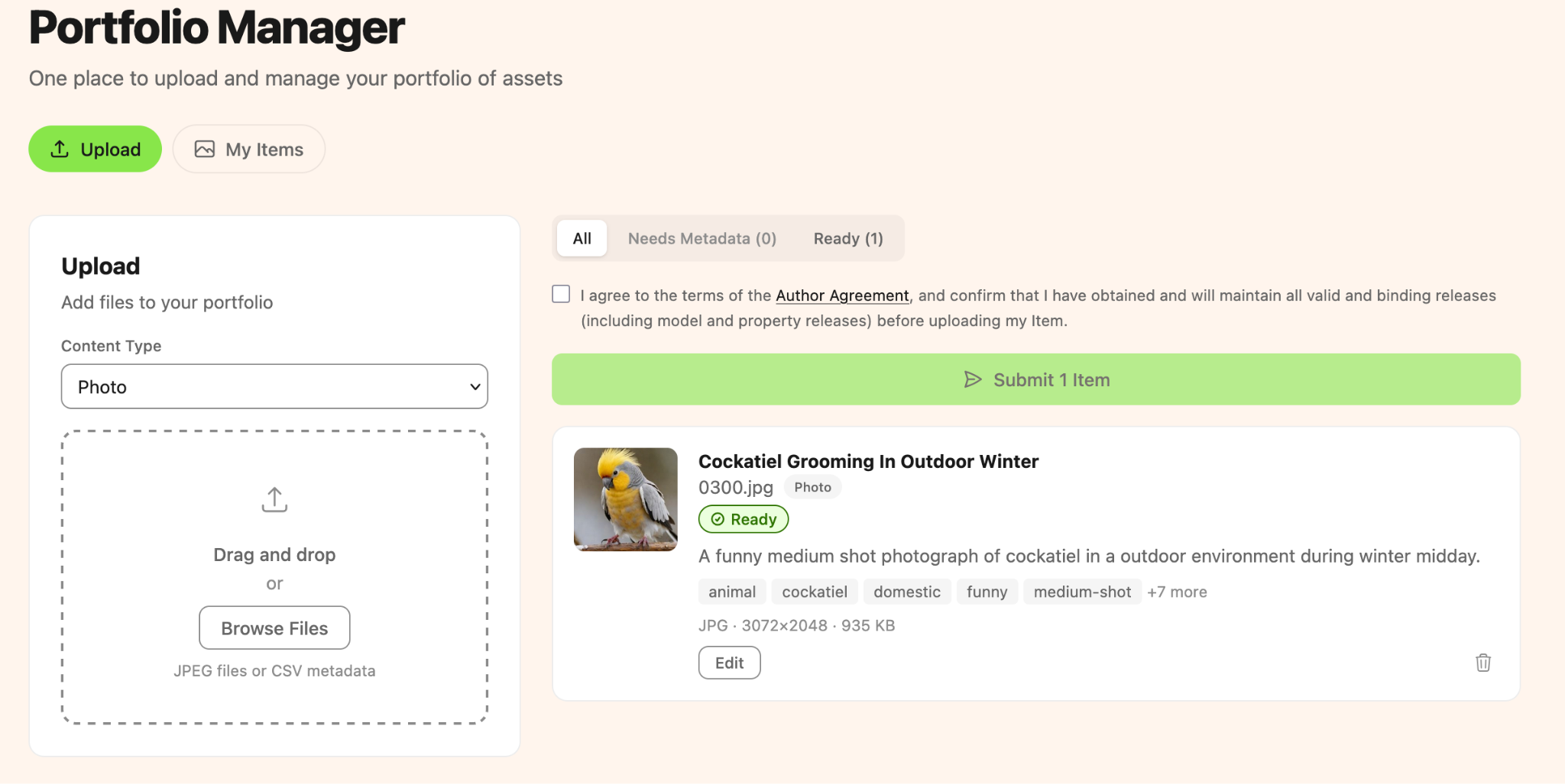 For more information on managing your items after they've been uploaded and submitted, you can refer to our article How to Manage Your Items in the new Portfolio Manager.